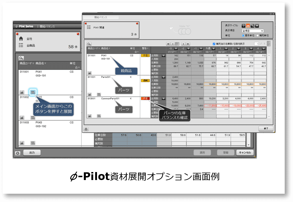 以前は製品を発注する際に、まず生産に必要な資材の在庫を確認し、必要な場合は資材を発注。その結果をEXCELでまとめ、製品の発注計画を立てる、という煩雑な作業を人が注意深く繋ぎ合わせて行っていました。 φ-Pilotを導入した後は、関連する資材の情報をφ-Pilotの画面で一目で確認できるようになり、作業の工数が大幅に削減されました。共通の資材についても、 φ-Pilotが製品の生産計画に必要なタイミングで発注を勧告してくれるので、無駄な発注や発注漏れがなくなり、資材の過剰在庫をほぼゼロにすることができました。